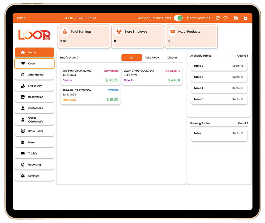 LOOPos revolutionizes guest experience by offering seamless payment solutions. Guests can pay conveniently online or offline, reducing wait times and expanding revenue opportunities. Our innovative contactless payment feature, Order Anywhere, allows guests to order, split bills, and pay with a few taps using QR codes!