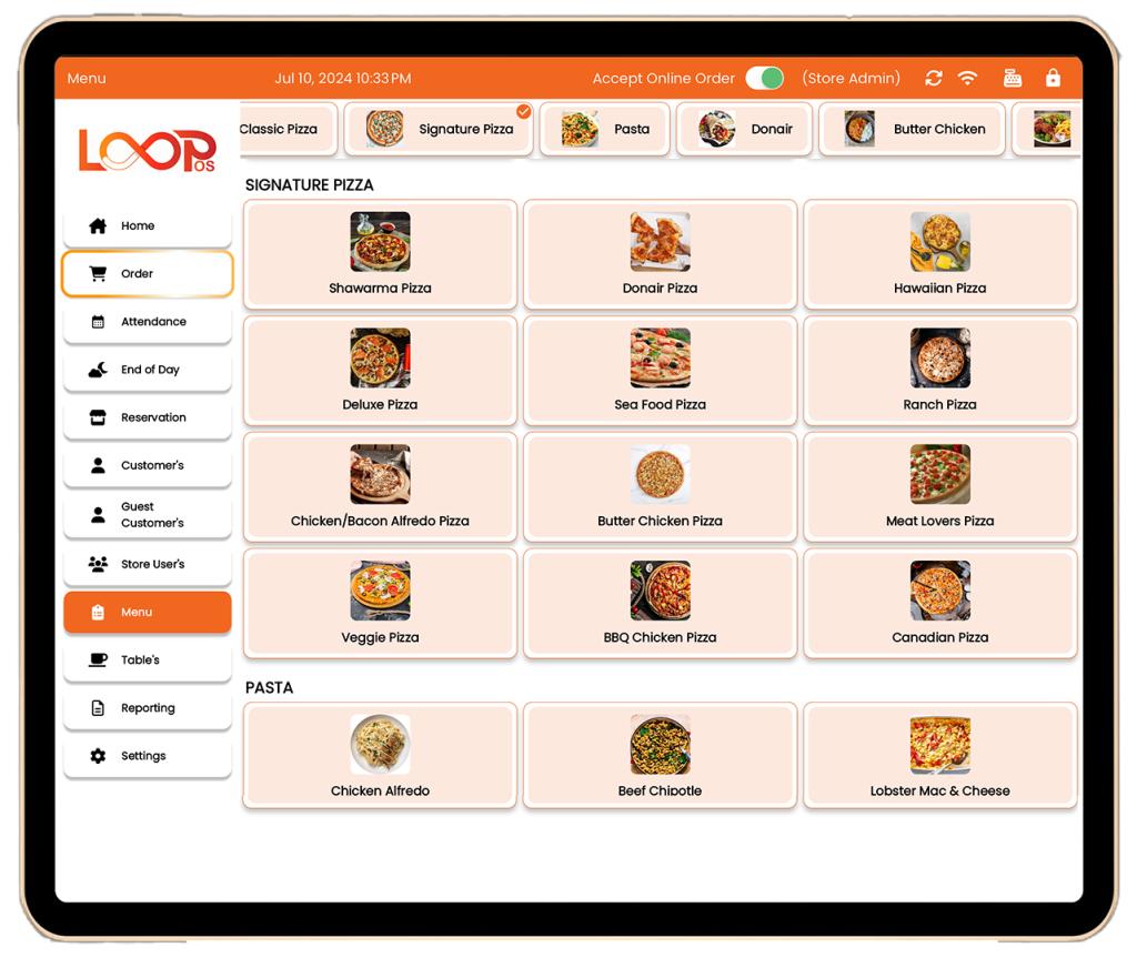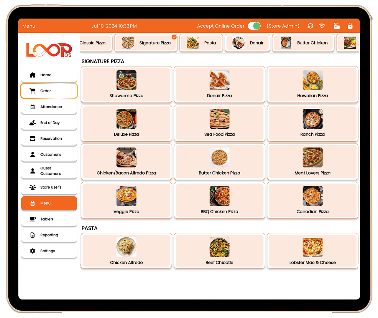 With LoopOS, you have full control over customizing your menu. Easily add, remove, or edit items to reflect your restaurant’s offerings accurately. You can also categorize items, add images, and include descriptions to entice your customers.