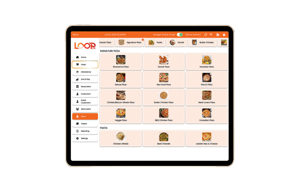 Easily create, update, and organize your menu with LOOPos’s intuitive menu management tools. Add items, set pricing, apply modifiers, and manage categories in real time—across one or multiple locations. Highlight bestsellers, schedule limited-time offers, and sync changes instantly to your POS, mobile app, and online ordering platforms. With LOOPos, your menu stays flexible, accurate, and always up to date.